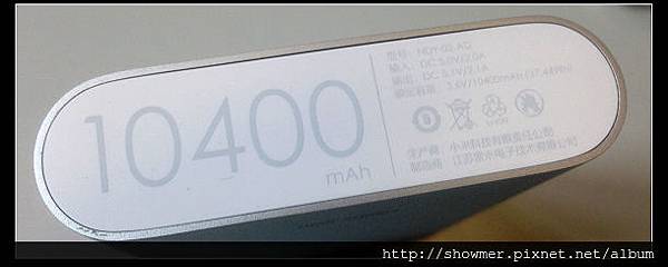 總容量為 10400mAh , 輸入為 2A (p.s 無過充保護)輸出 2.1A,生產廠資訊等