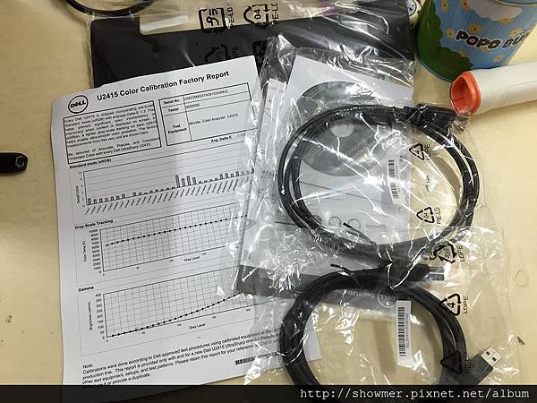 包裝一覽:原廠較色報告、USB 3.0的線材、DP轉miniDP線材以及簡易說明書和驅動光碟