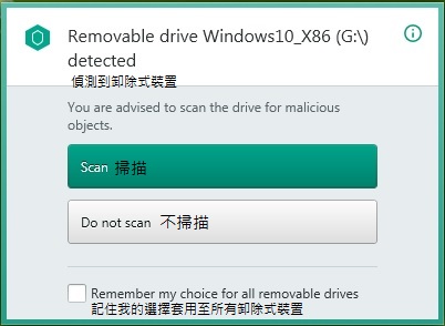 當你插入隨身碟之類的卸除式儲存裝置,會詢問你是否要掃描,正常來說我都按不掃描略過XD。