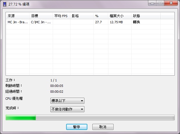 7. 出現編碼進度畫面,等待所有檔案轉換完成。