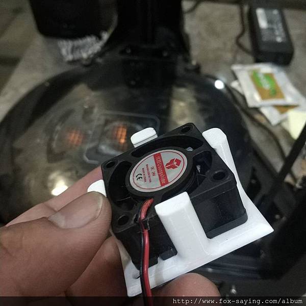 正統的維修方式是換上 24V 5CM 風扇,如果手中沒有的話可以用轉接座改裝 4CM 風扇上去