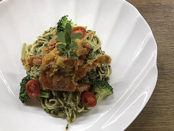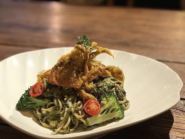 軟殼蟹青醬麵的擺盤賣相頗佳