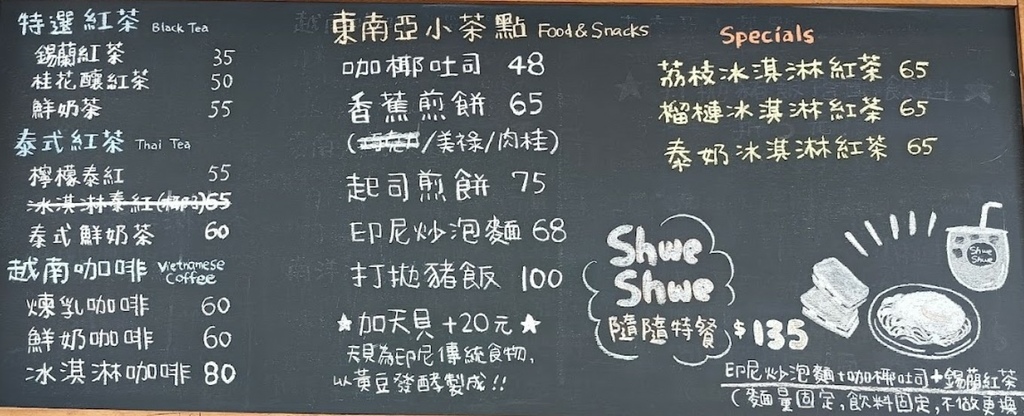 因為老闆是個熱愛東南亞文化的台灣人,所以菜單上選項存在著東南亞風格與台灣風格的選擇