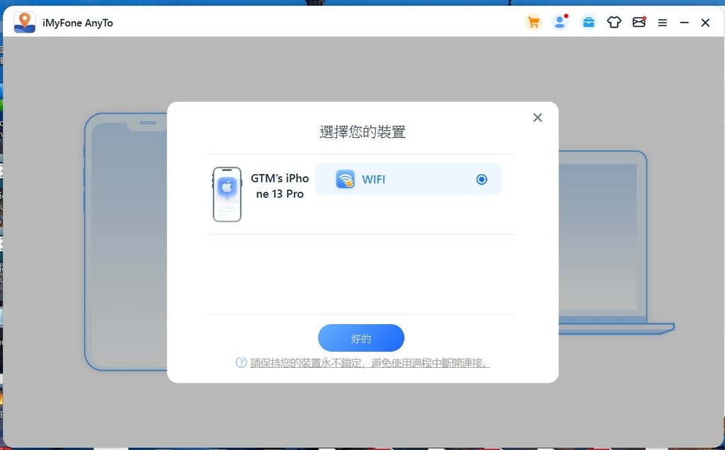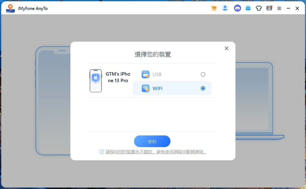 目前 iMyFone AnyTo 已經有了完整的中文介面支援
