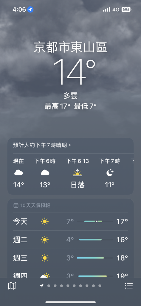 小編老G真的就飛到京都去了,而且連手機的氣象位置也能正確顯示