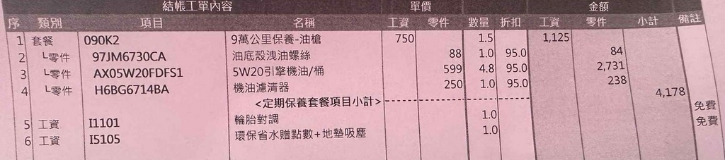 九萬公里保養 (90492KM) ~ 看來今年可能又會不小心破 35000KM 了
