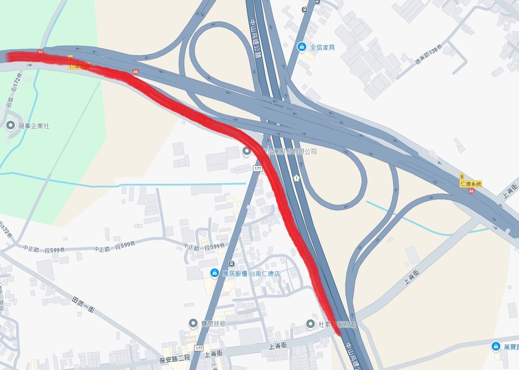 我常常用 95 ~ 100 KM/hr 的速度通過下圖從台 86 轉到南下國一 的引道 (雨天也一樣)