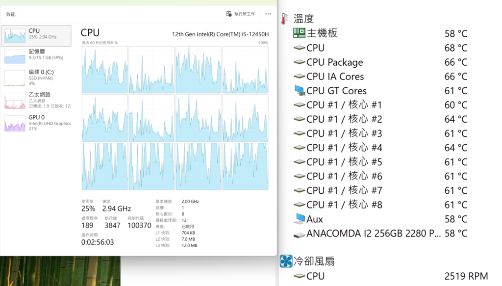 i5-12450H 為一個有 P-Core 4 核心 8 執行序+ E-Core 4 核心 4 執行序 的 CPU