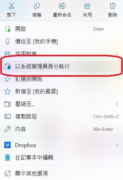 下載完成之後請在該檔案上右鍵 > 以系統管理員身份執行