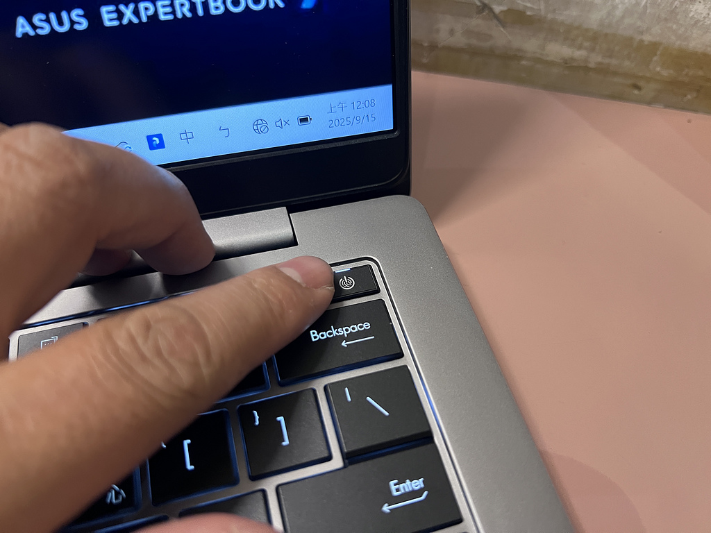 Top-right corner of the keyboard is the power button for this ExpertBook P3 (PM3406CKA).