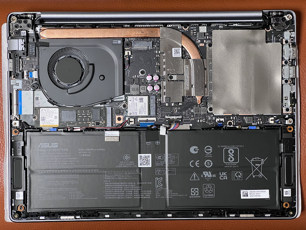 Unlike some laptops where you gotta yank the mobo first for RAM or SSD, ASUS labels everything clear on the PCB nearby.