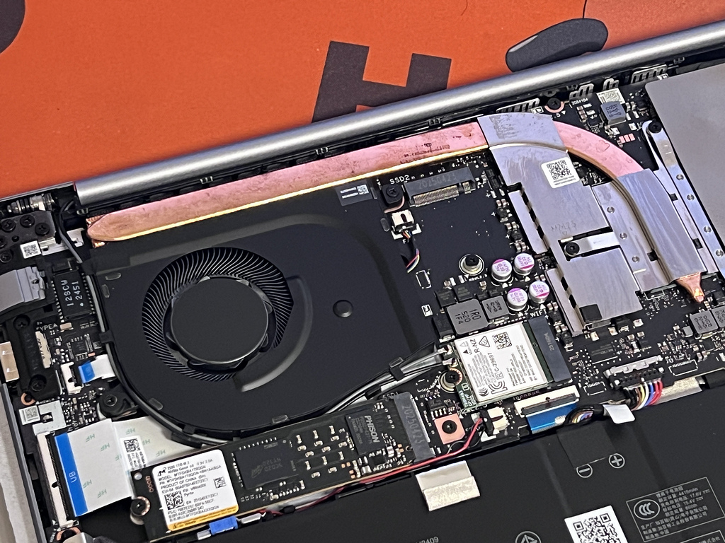 Cooling's fan plus heat pipe setup.