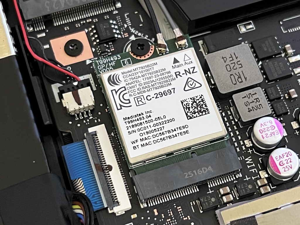 This test unit's Wi-Fi card is the new Wi-Fi 7 MediaTek MT7925 WiFi7 from MediaTek.