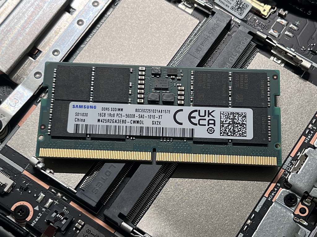 Peel the RAM shield sticker, and there's a Samsung DDR5-5600 16GB SO-DIMM inside.