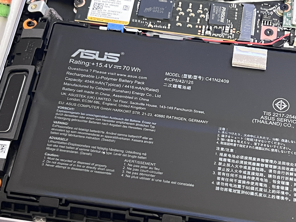 Battery's 70Wh (4548mAh) lithium-polymer.