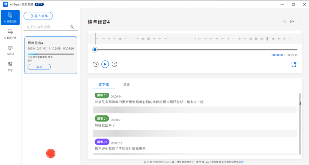 AI handles transcript translations.
