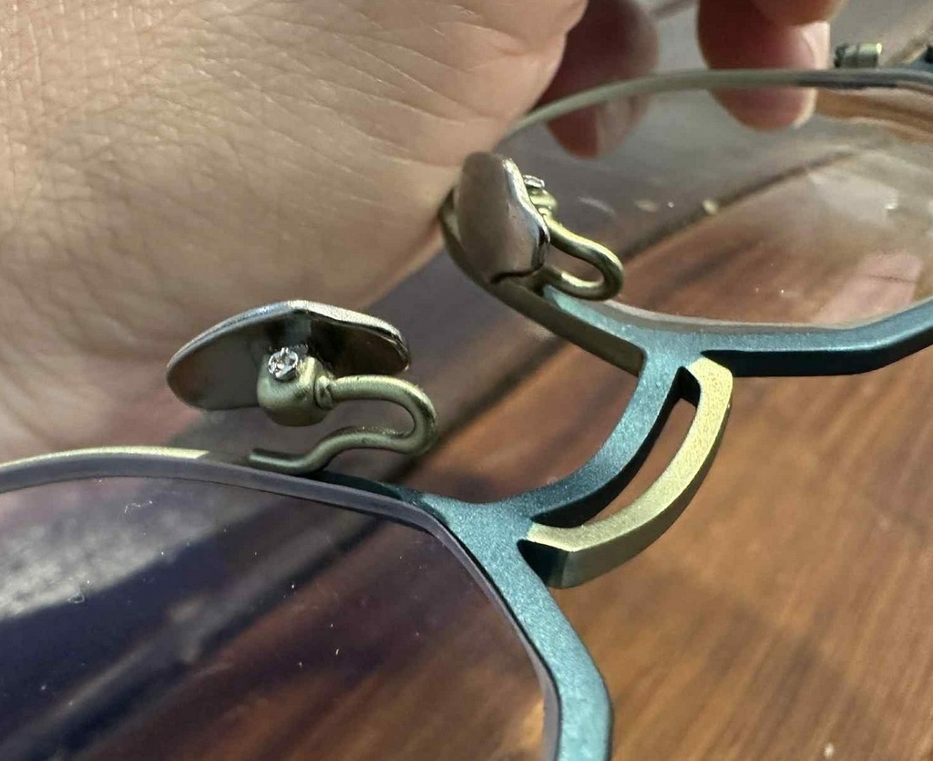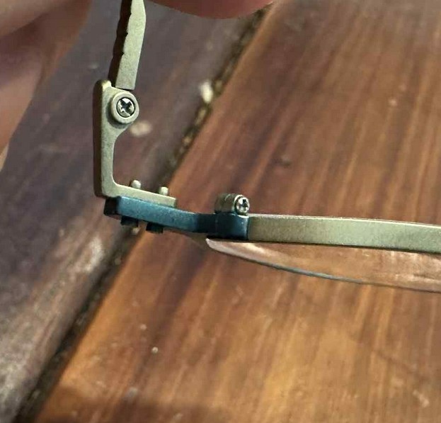 鏡架與鏡腳扣件的連接是用兩個螺栓固定,我覺得蠻有特色的