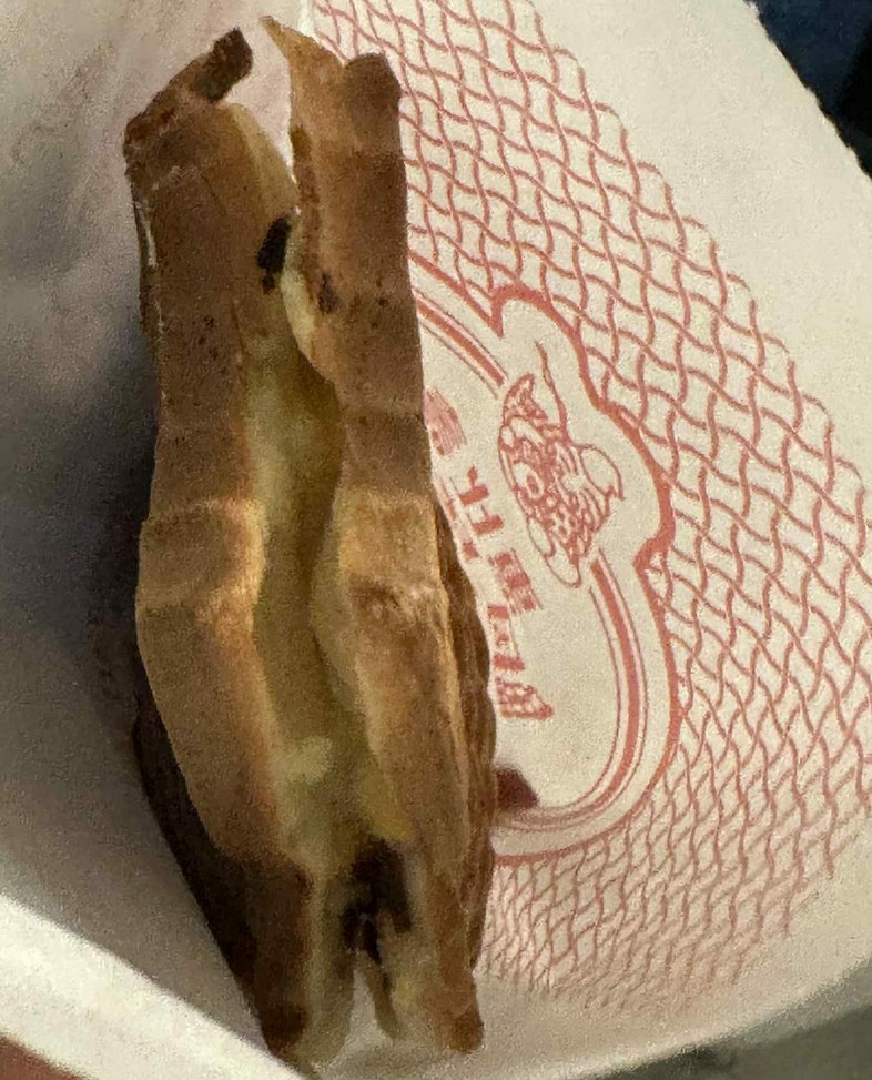 推薦大家先打開紙袋透氣一下,讓鯛魚燒的外殼降溫散水氣稍微硬化一點