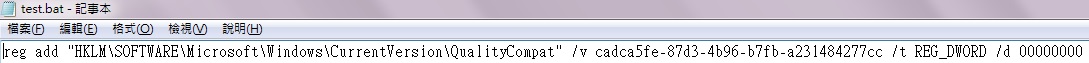 reg add "HKLM\SOFTWARE\Microsoft\Windows\CurrentVersion\QualityCompat" /v cadca5fe-87d3-4b96-b7fb-a231484277cc /t REG_DWORD /d 00000000